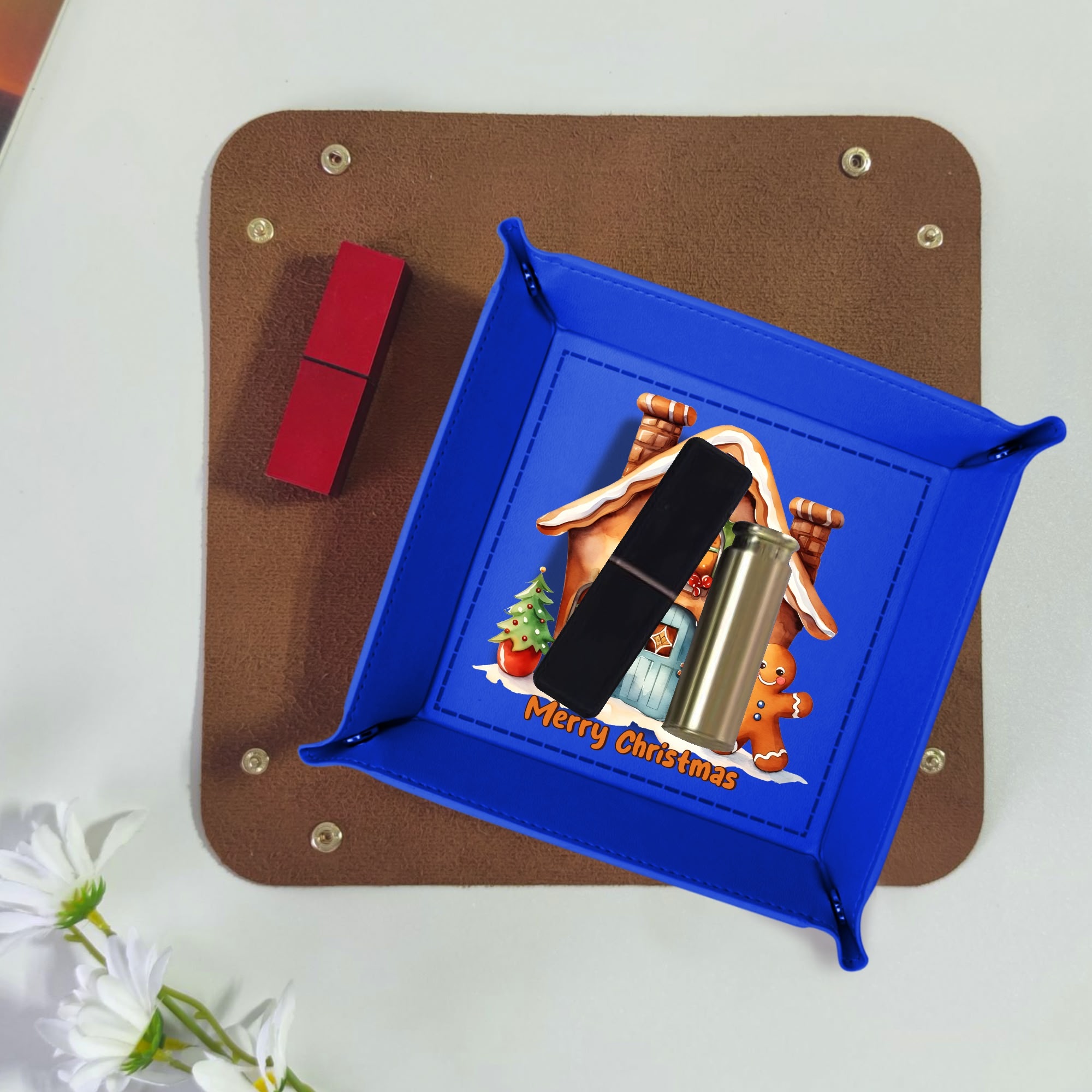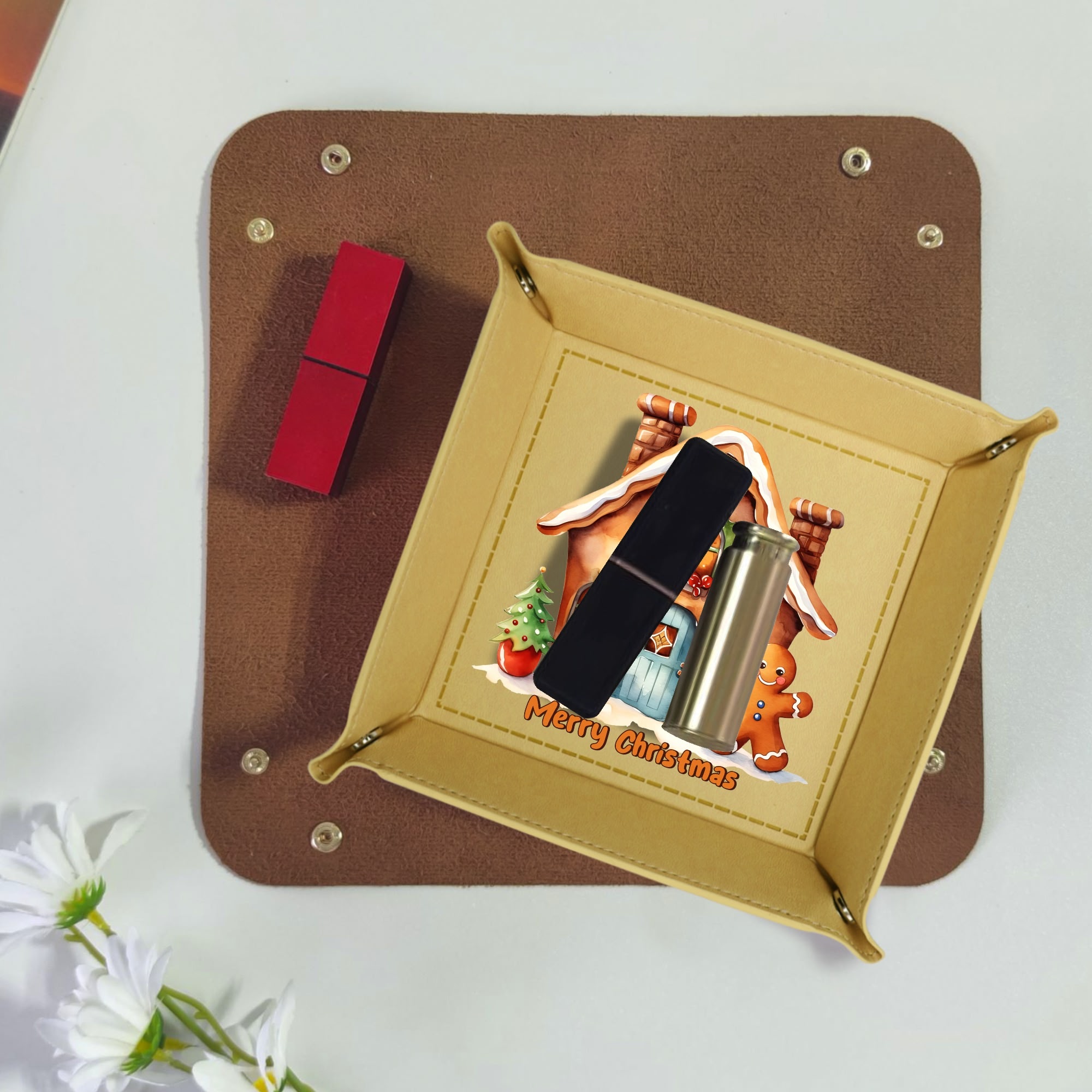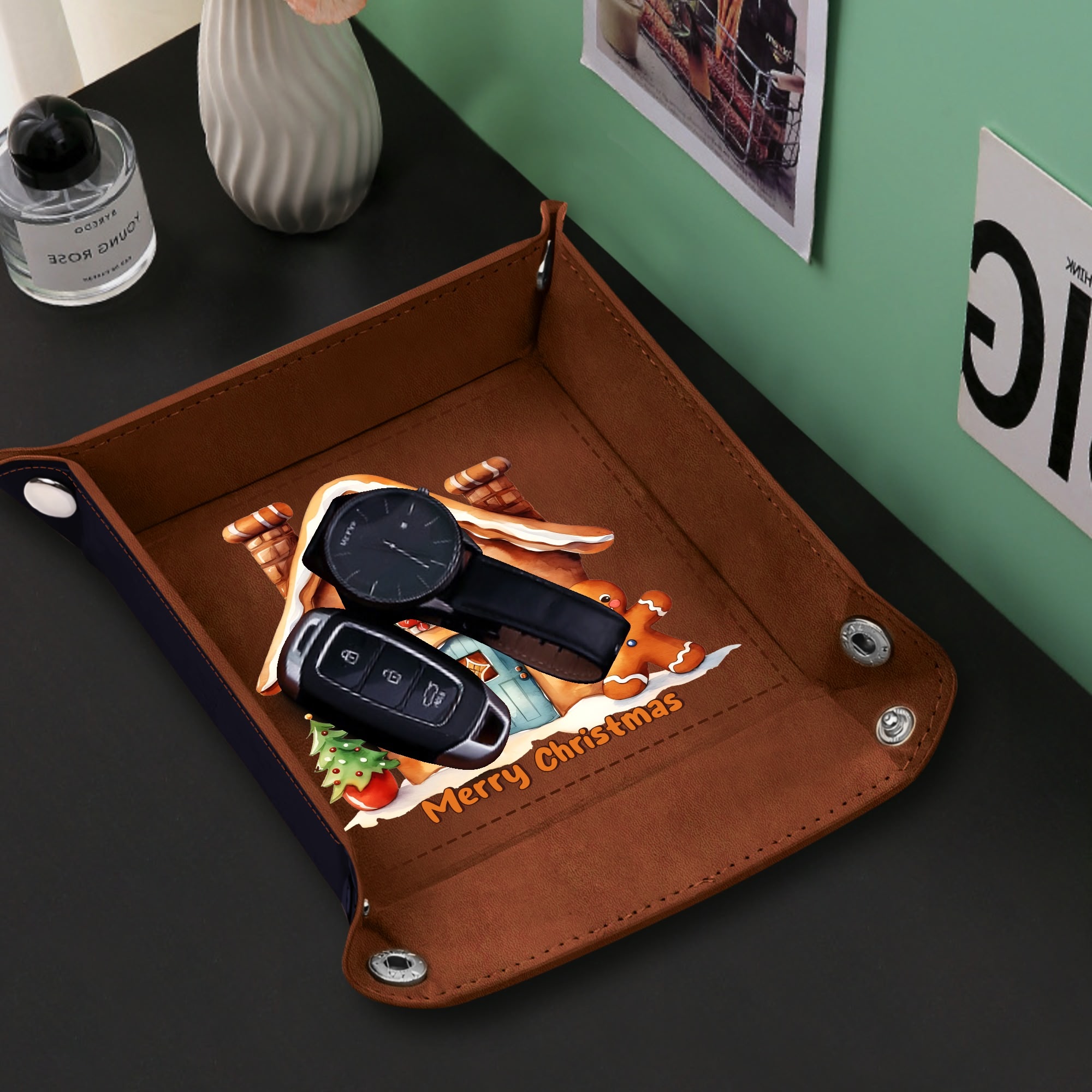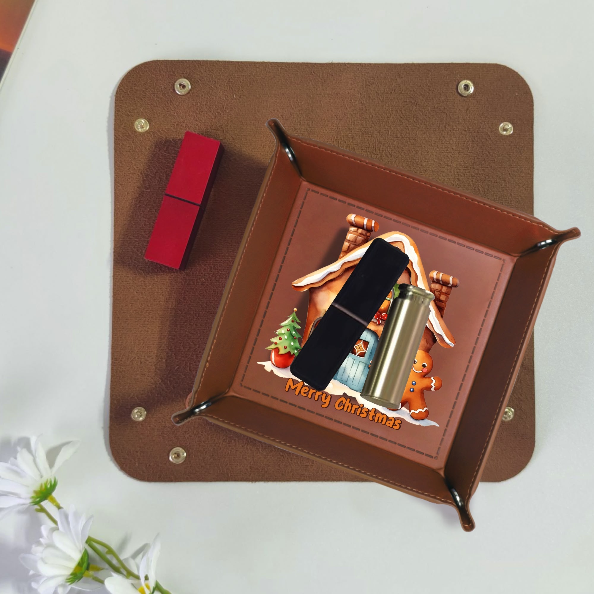 Wedding Holiday Birthday Corporate Gift with Custom Designs for PU Leather Valet Tray with Jewelry Key Coin Glasses Tray ! Show your appreciation with a one of a kind party favor for your co-workers , friends, or family members.