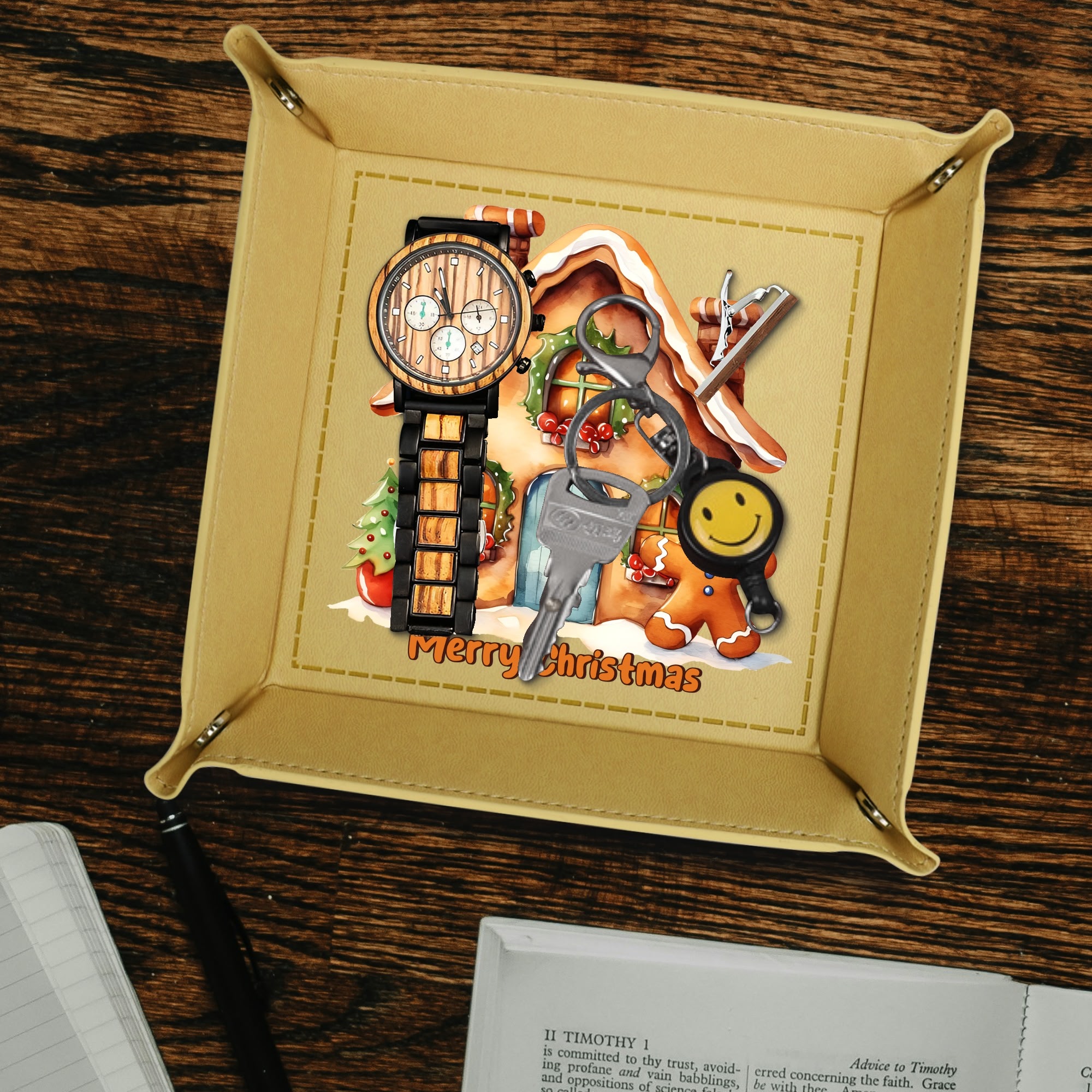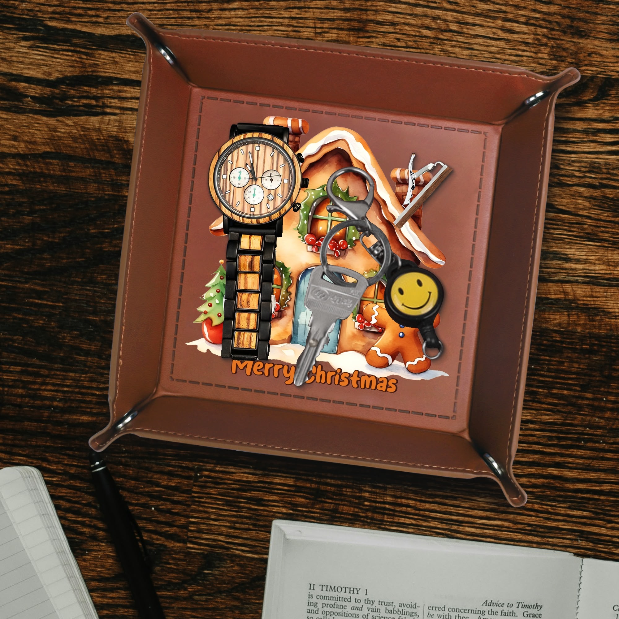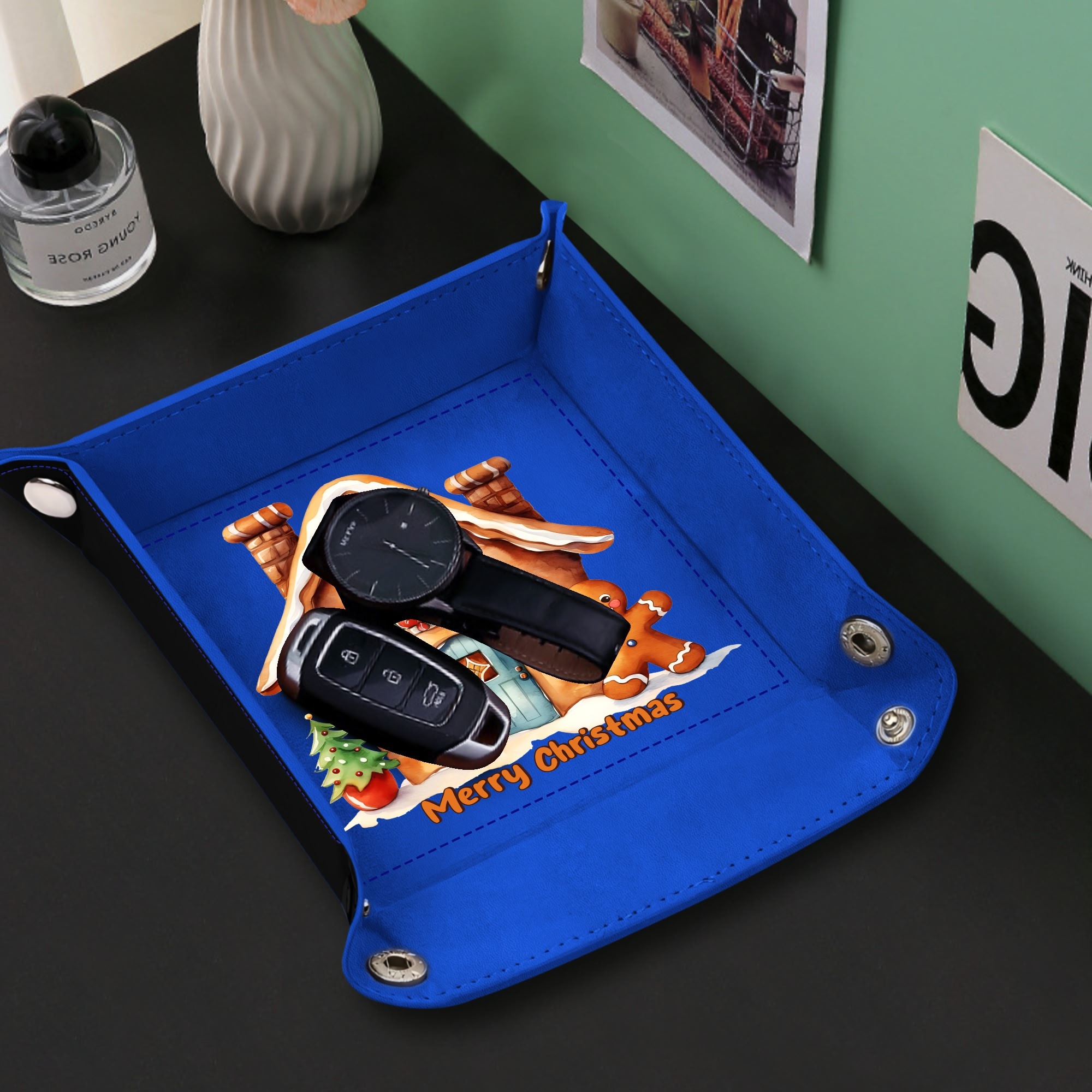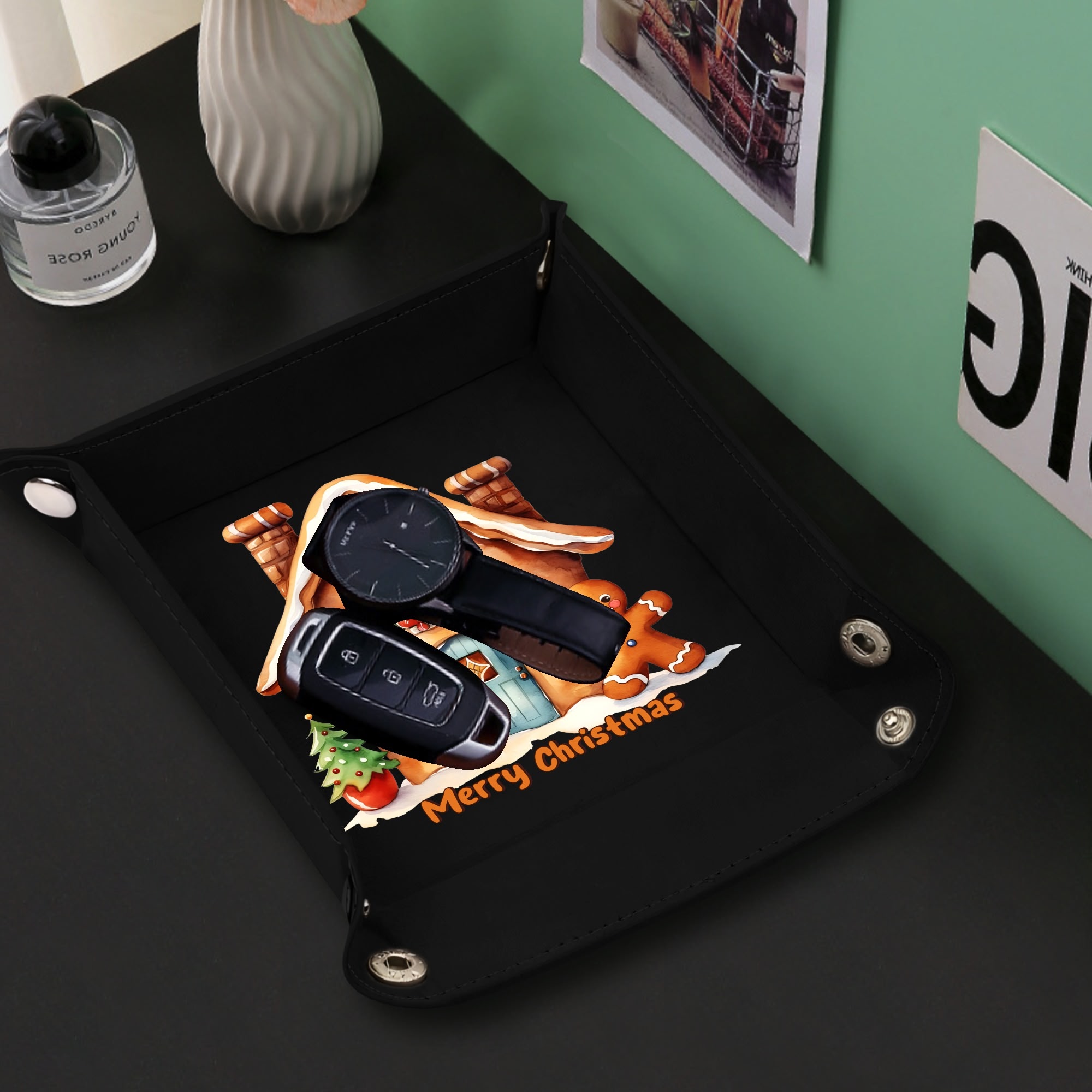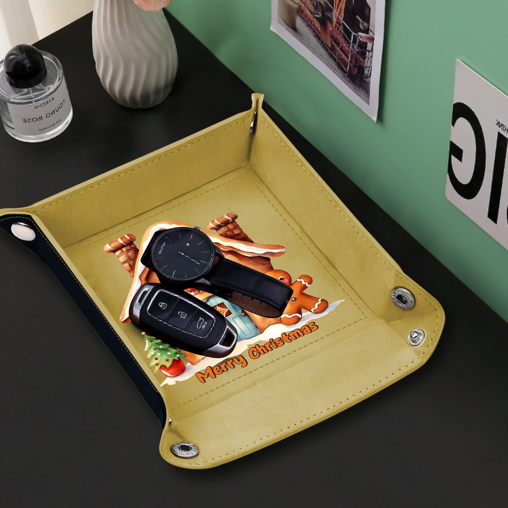 Wedding Holiday Birthday Corporate Gift with Custom Designs for PU Leather Valet Tray with Jewelry Key Coin Glasses Tray ! Show your appreciation with a one of a kind party favor for your co-workers , friends, or family members.