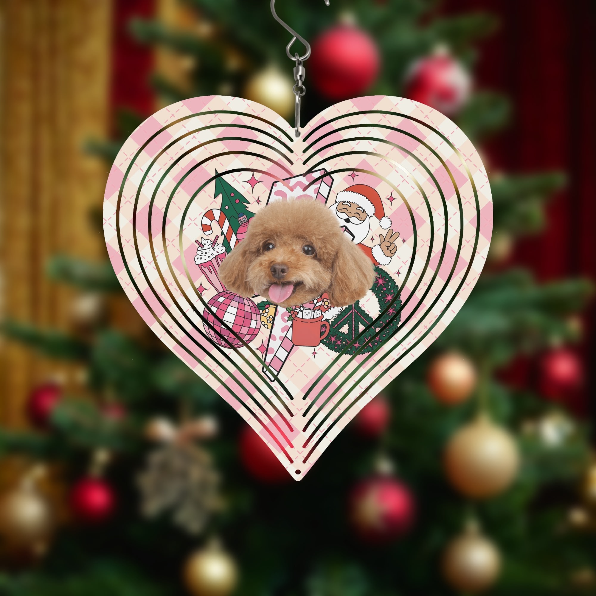 2 Sizes of Heart Hanging Wind Spinner Christmas Tree Design Hanger for Yard Porch Front Door ! High quality image print with superior protection. making it ideal for use as an outdoor metal office art home decor party show.