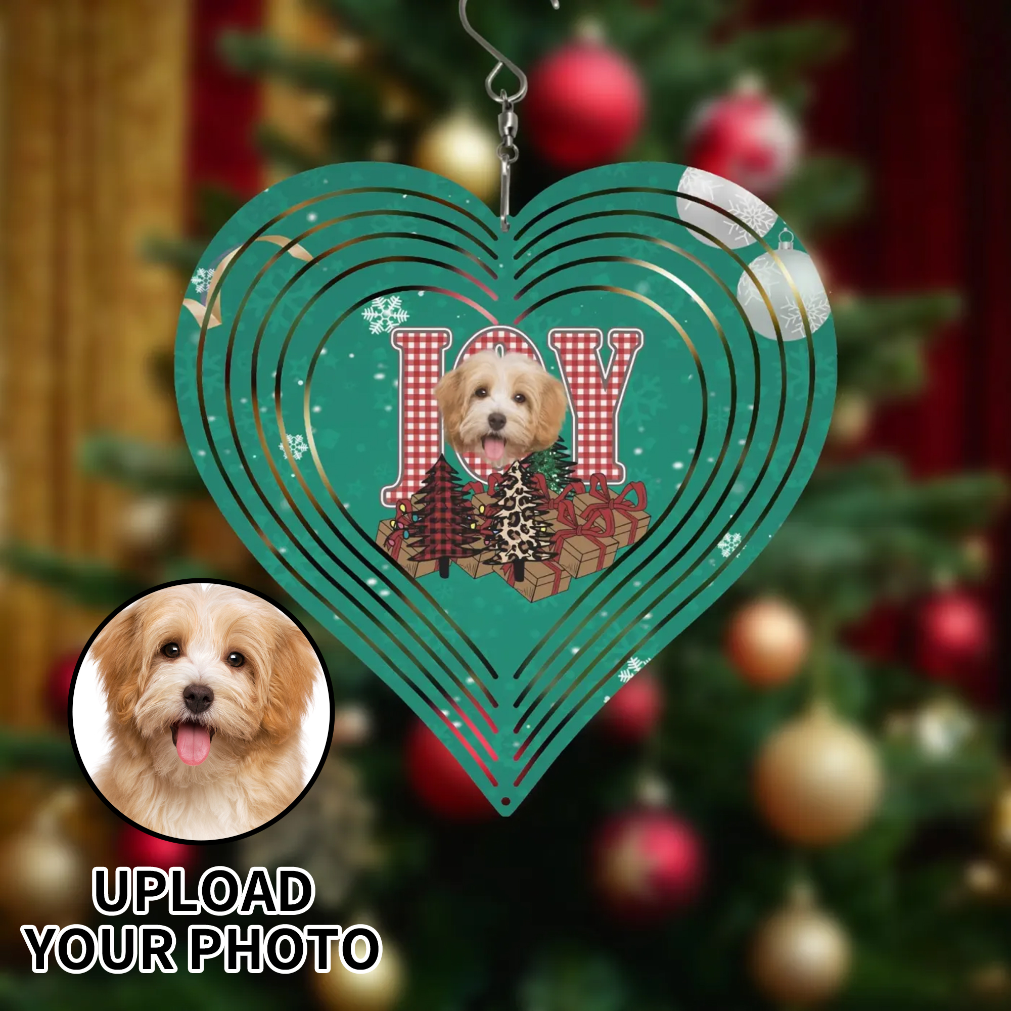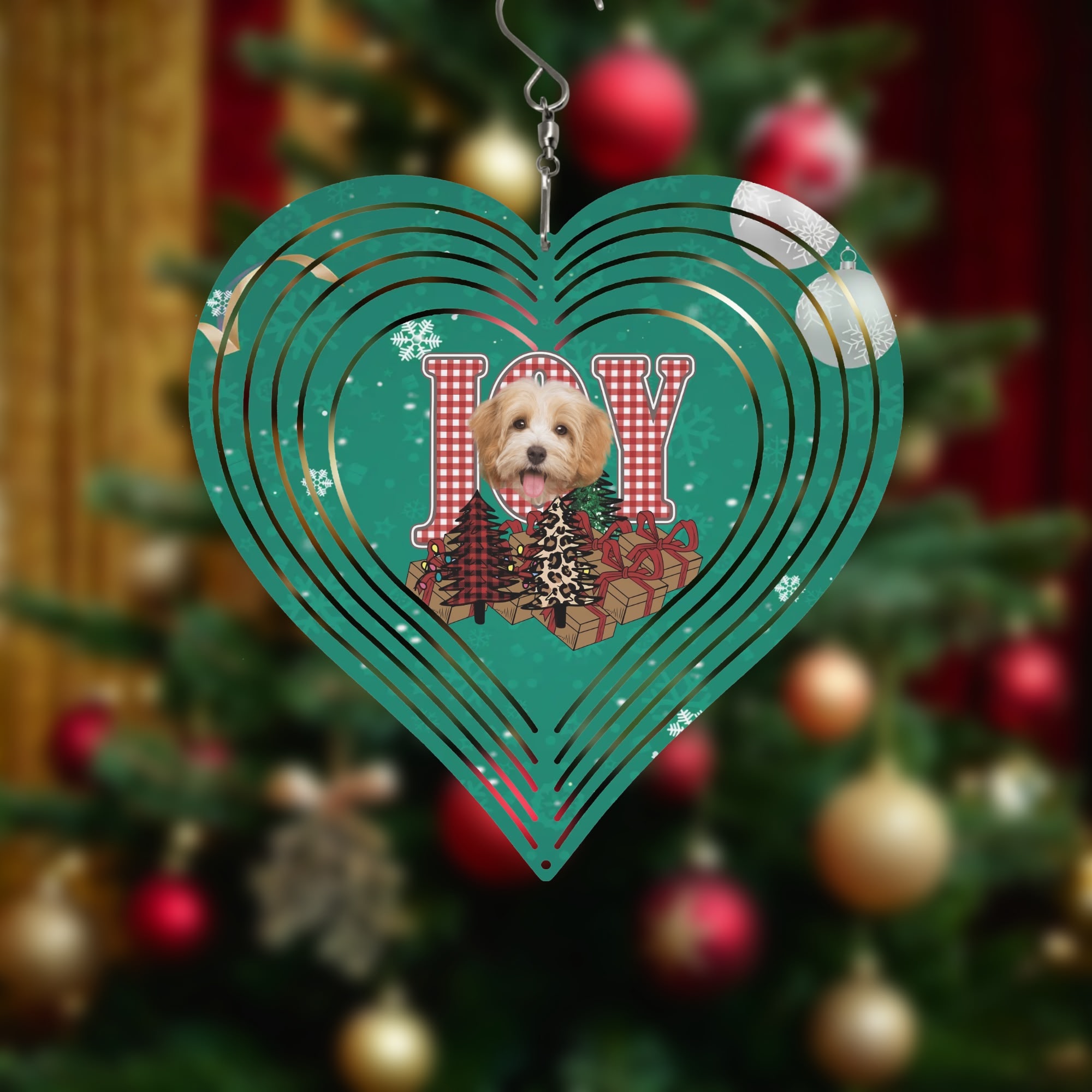 2 Sizes of Heart Hanging Wind Spinner Christmas Tree Design Hanger for Yard Porch Front Door ! High quality image print with superior protection. making it ideal for use as an outdoor metal office art home decor party show.