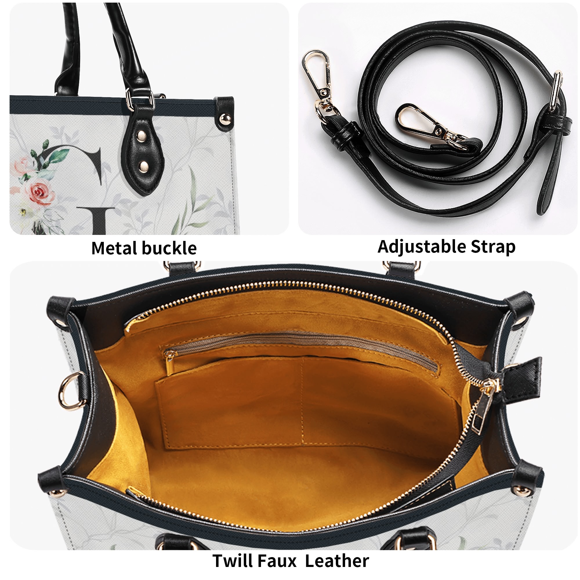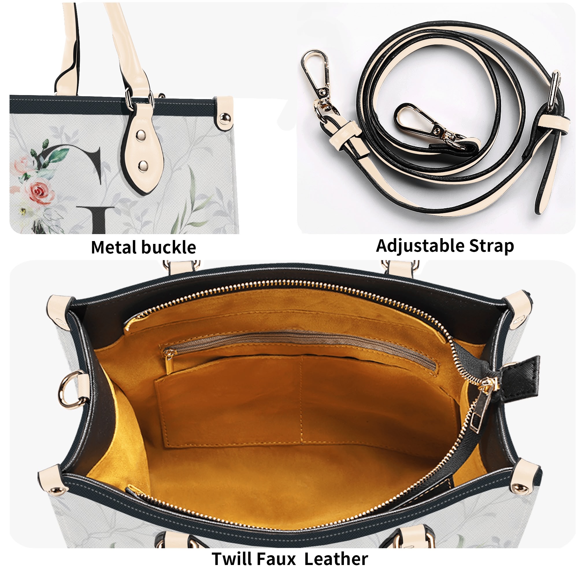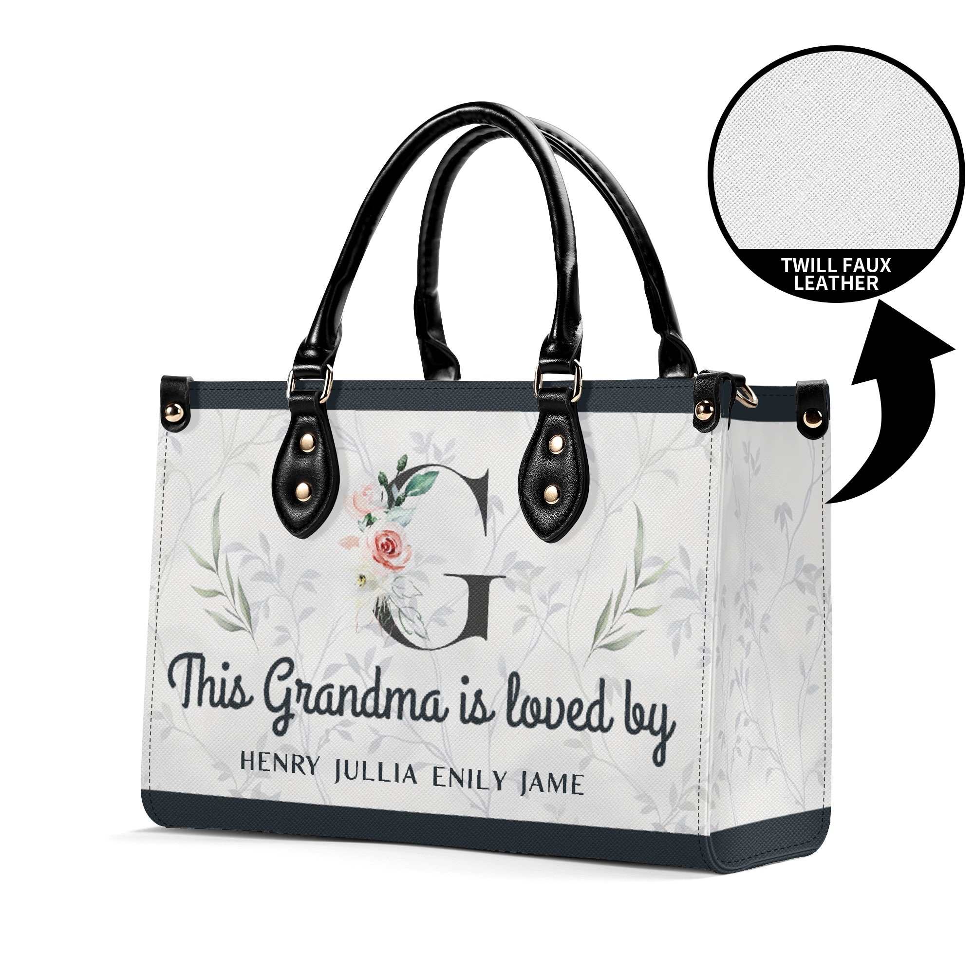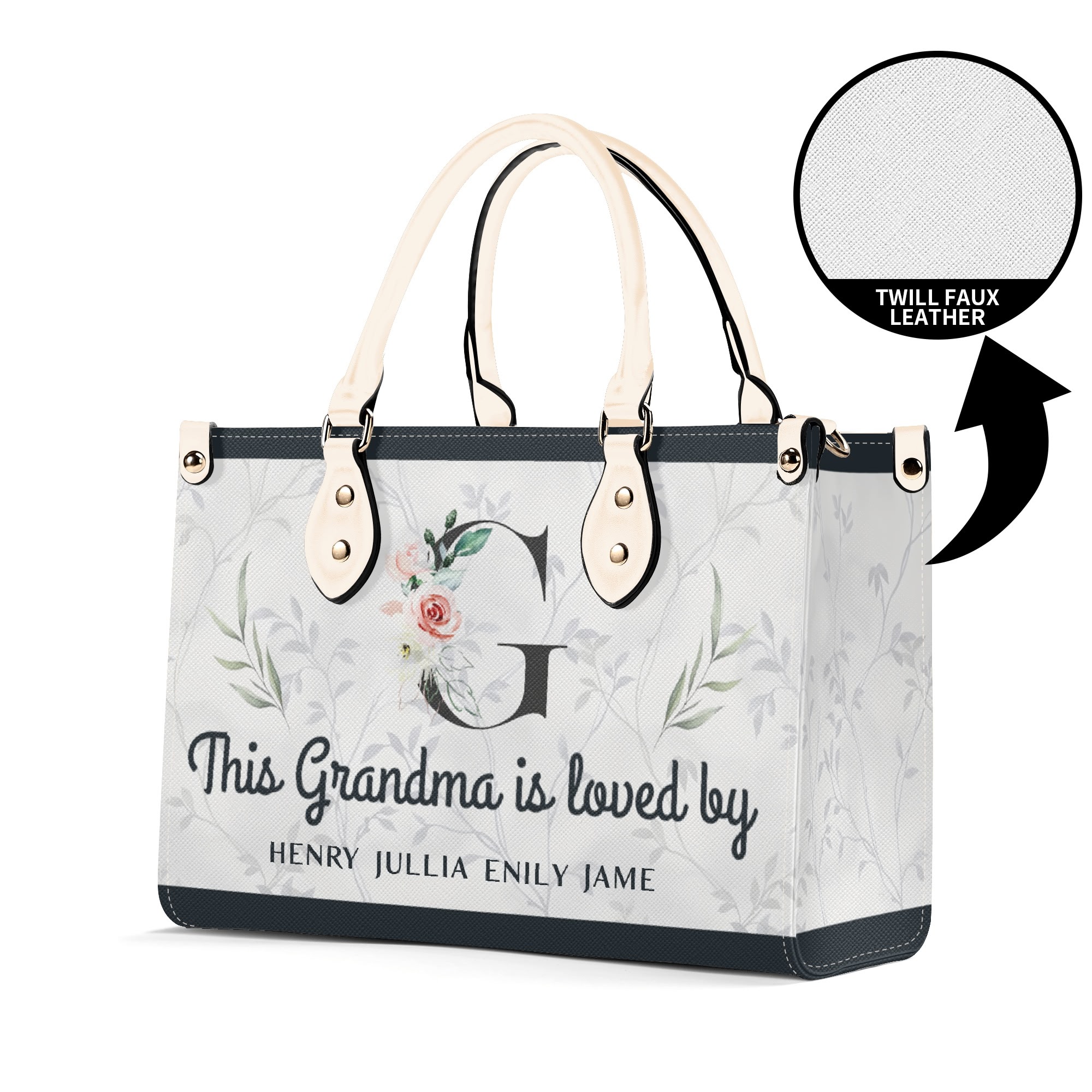 * High-Quality Twill Faux PU Leather: Crafted from premium twill faux PU leather for durability and style.