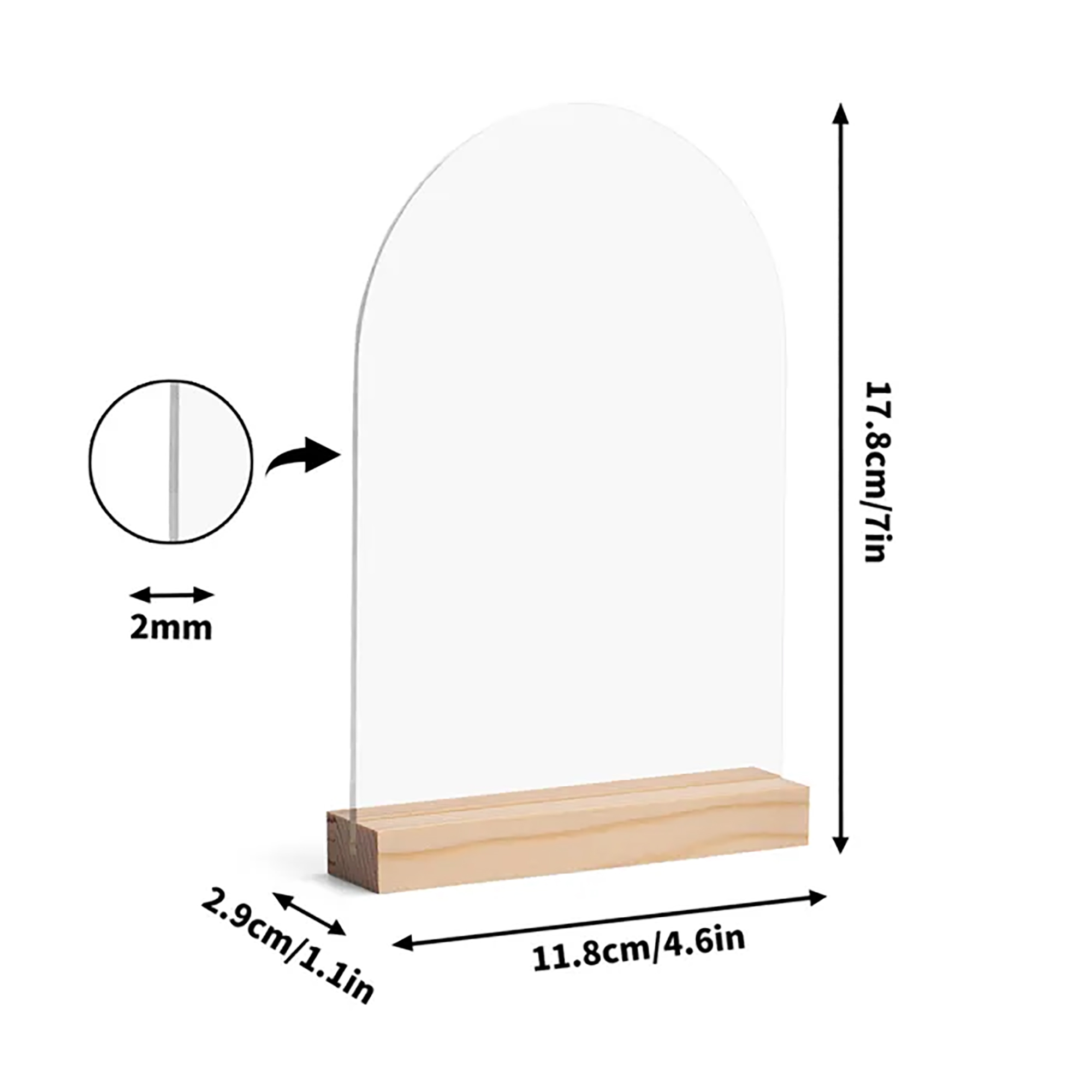 4.7x 7 Inch Personalised Clear Arch Acrylic Sign with Wooden Stands,Arched Round Top with DIY Name /Logo as Gifts for Event Party Sign Decoration !
