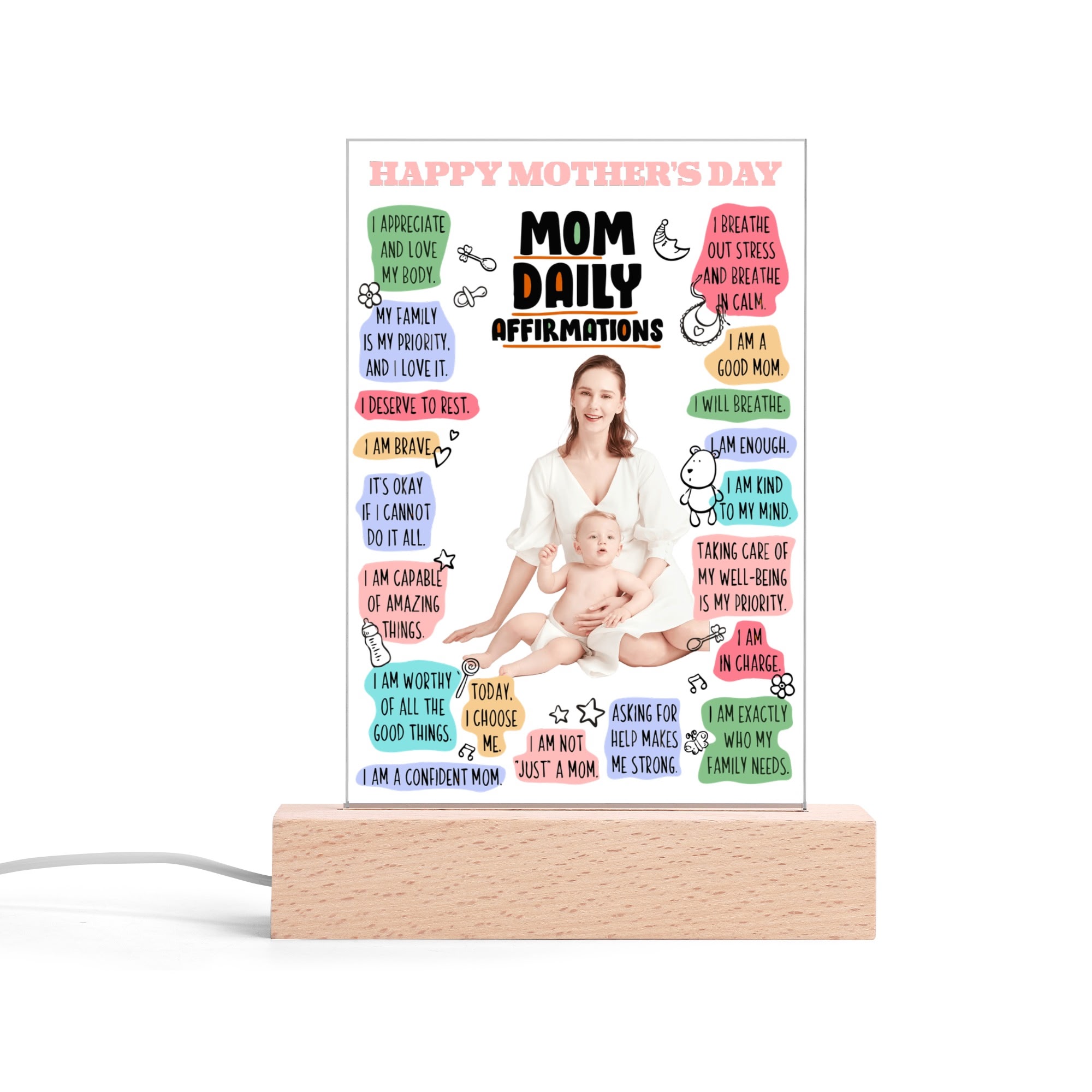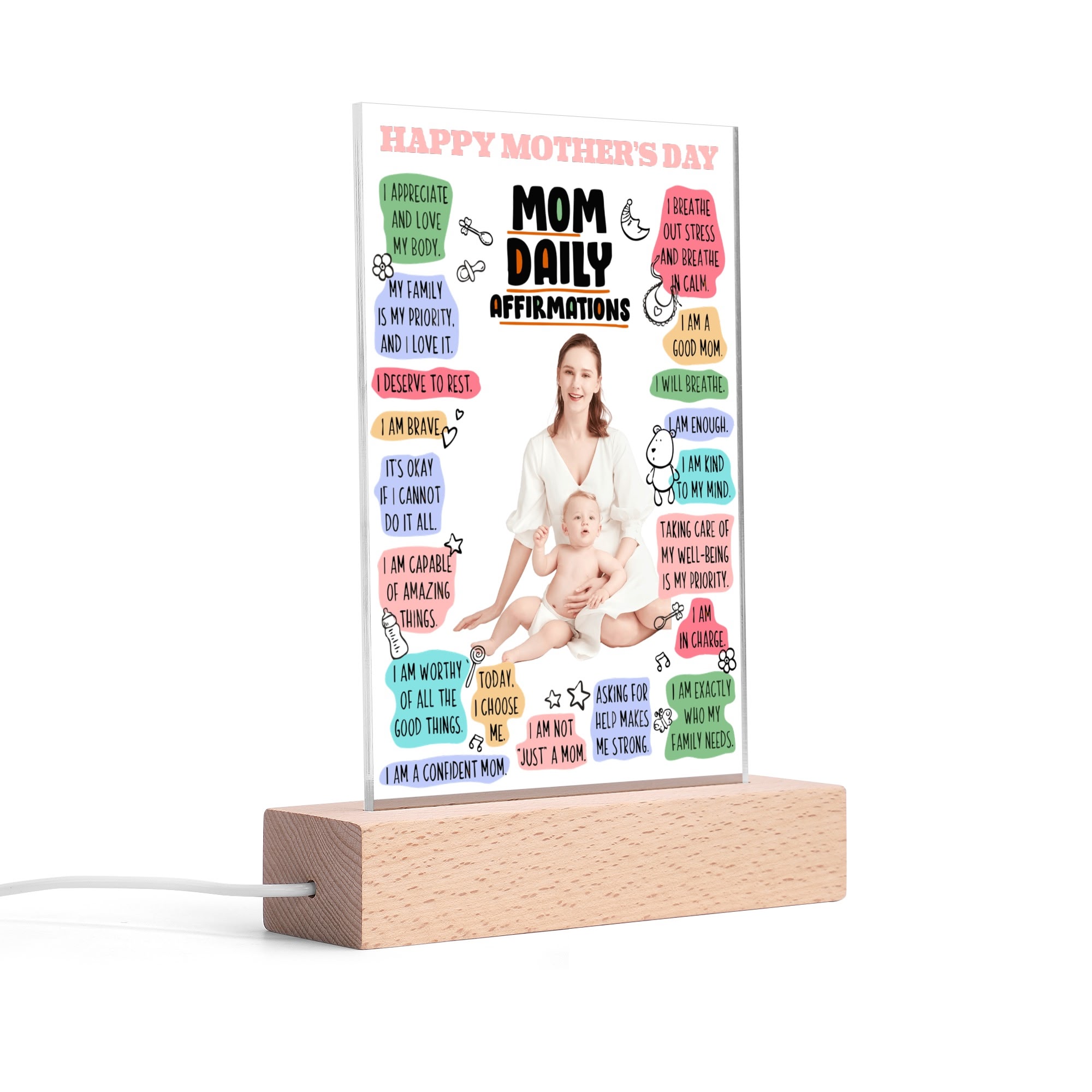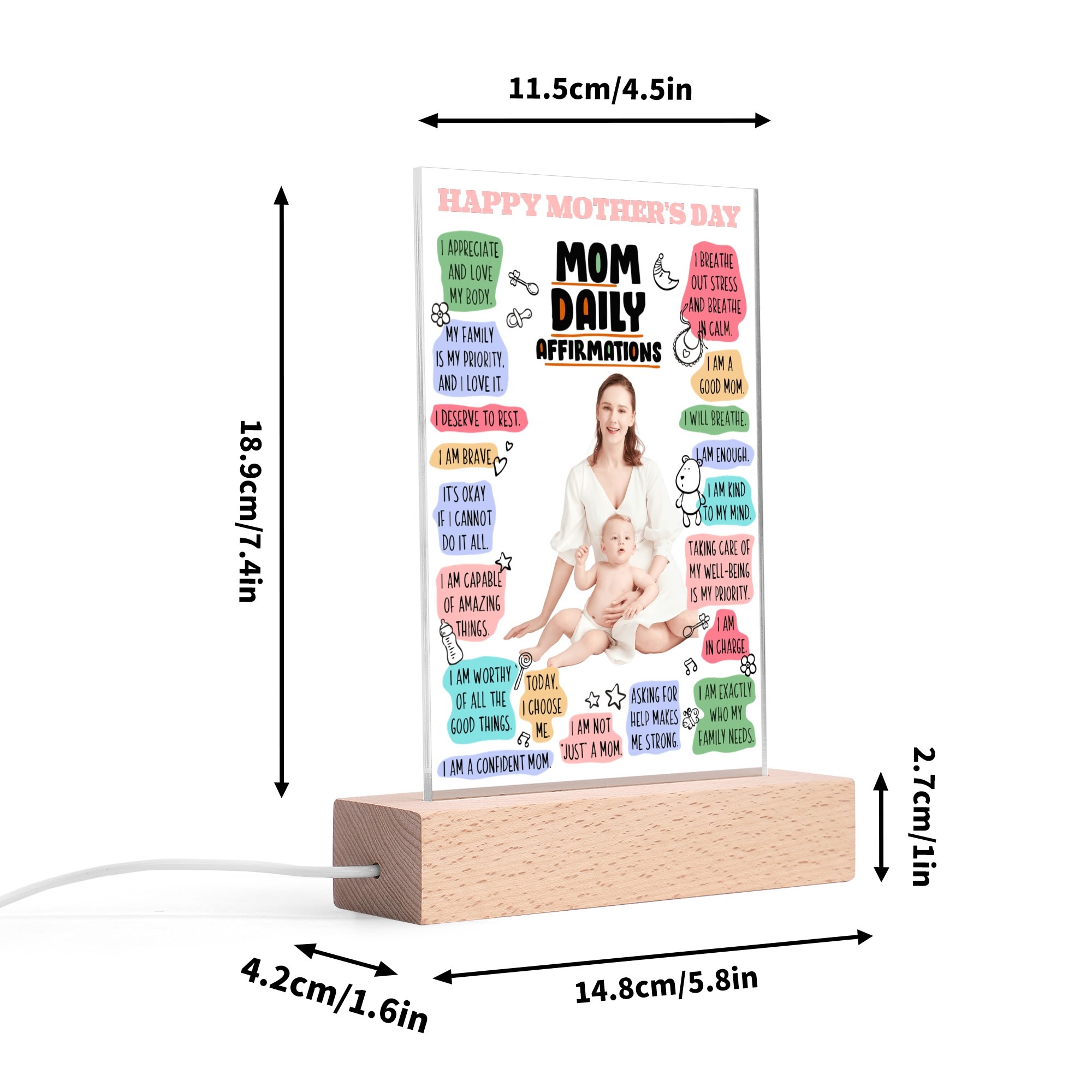 Personalized Rectangle Acrylic Lamp Acrylic Sign Top with Wooden Stands for Event Party Sign Decoration, and Unique Baby gift !