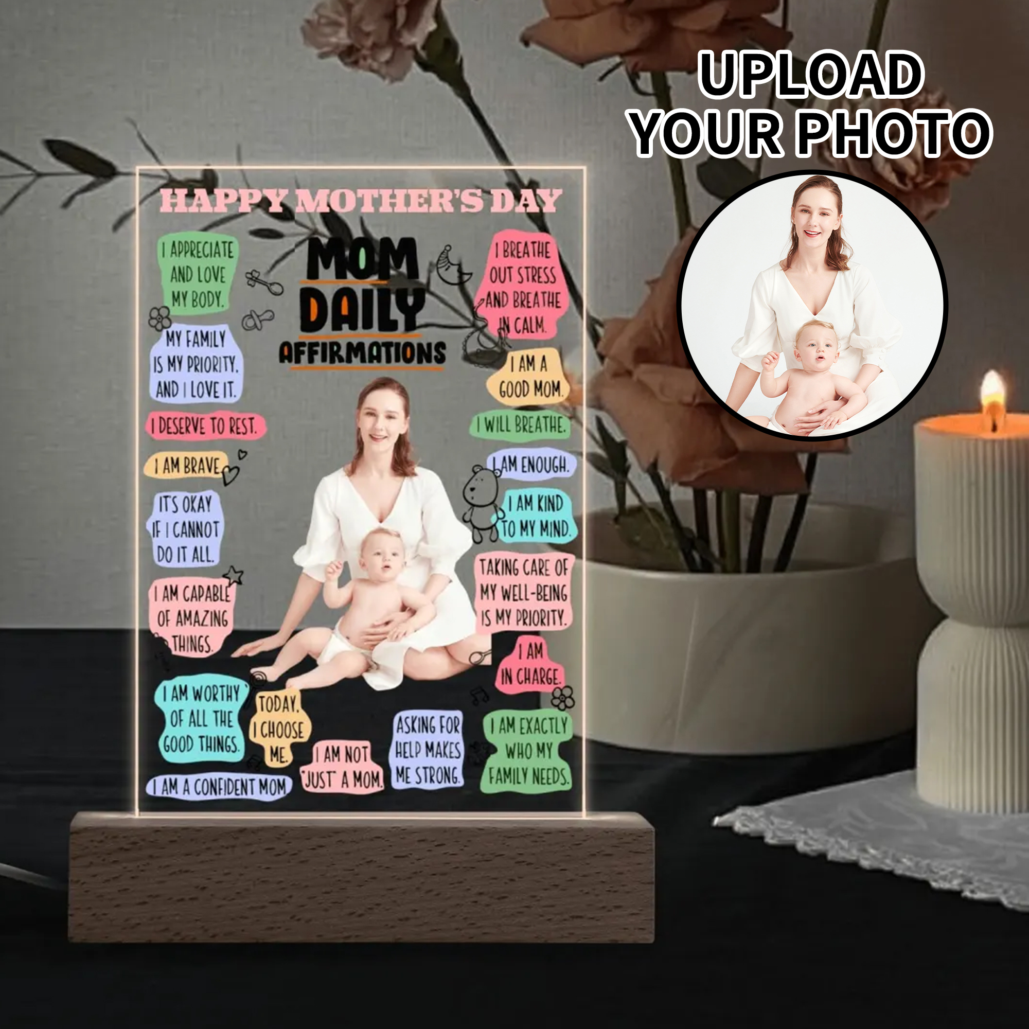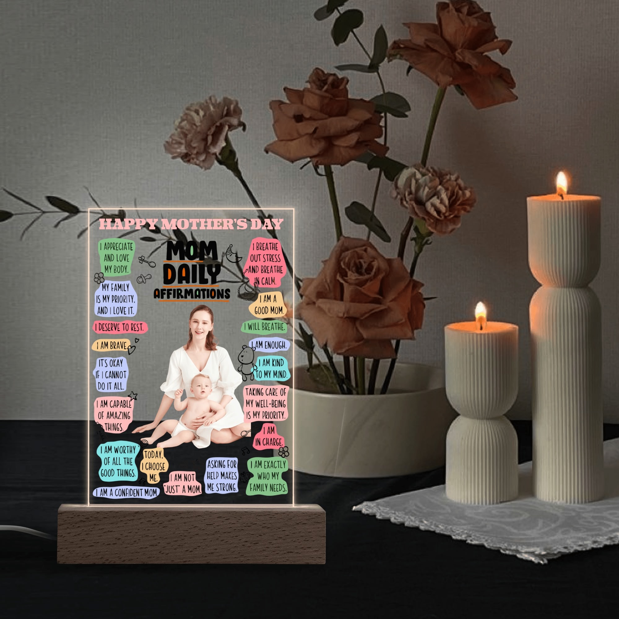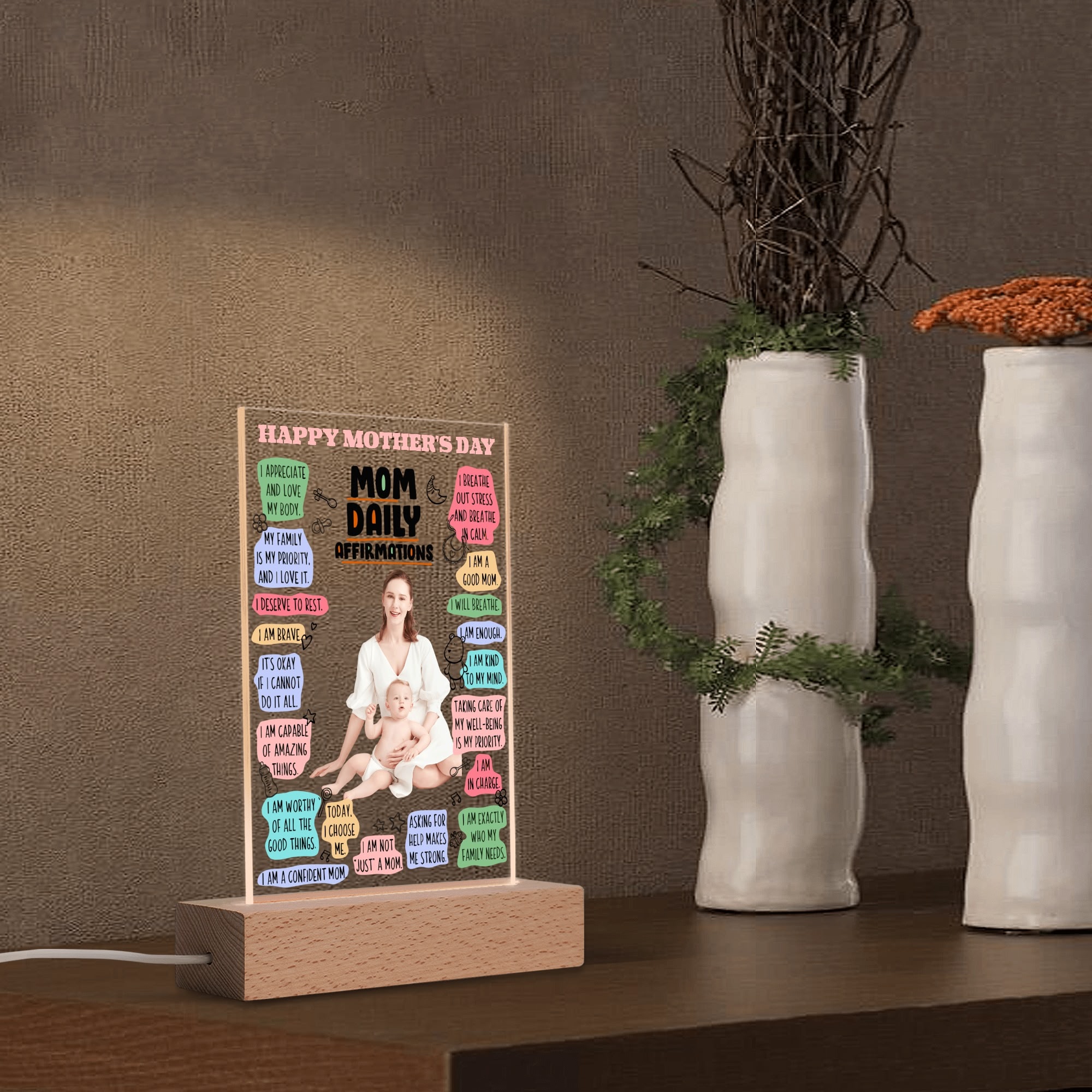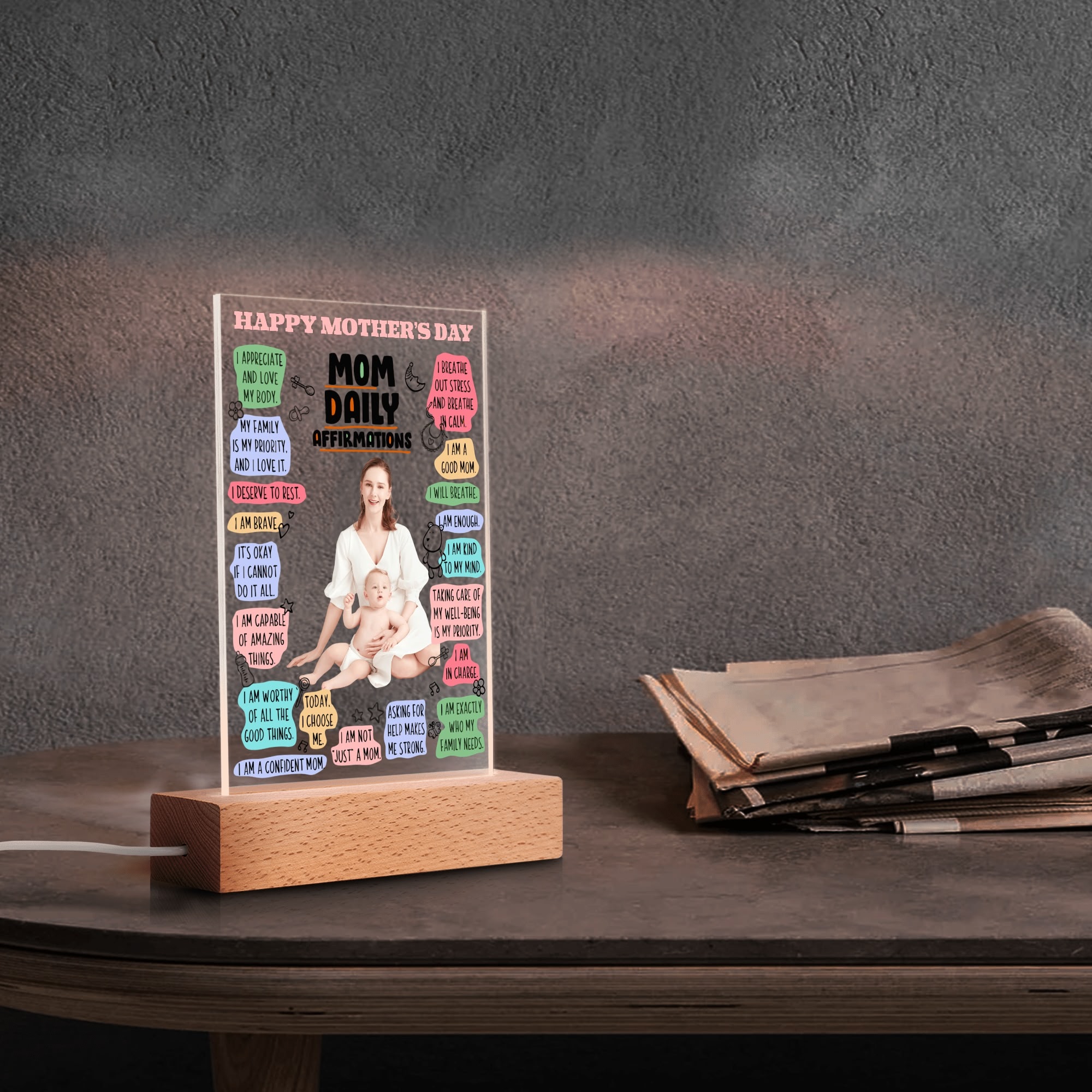 Personalized Rectangle Acrylic Lamp Acrylic Sign Top with Wooden Stands for Event Party Sign Decoration, and Unique Baby gift !