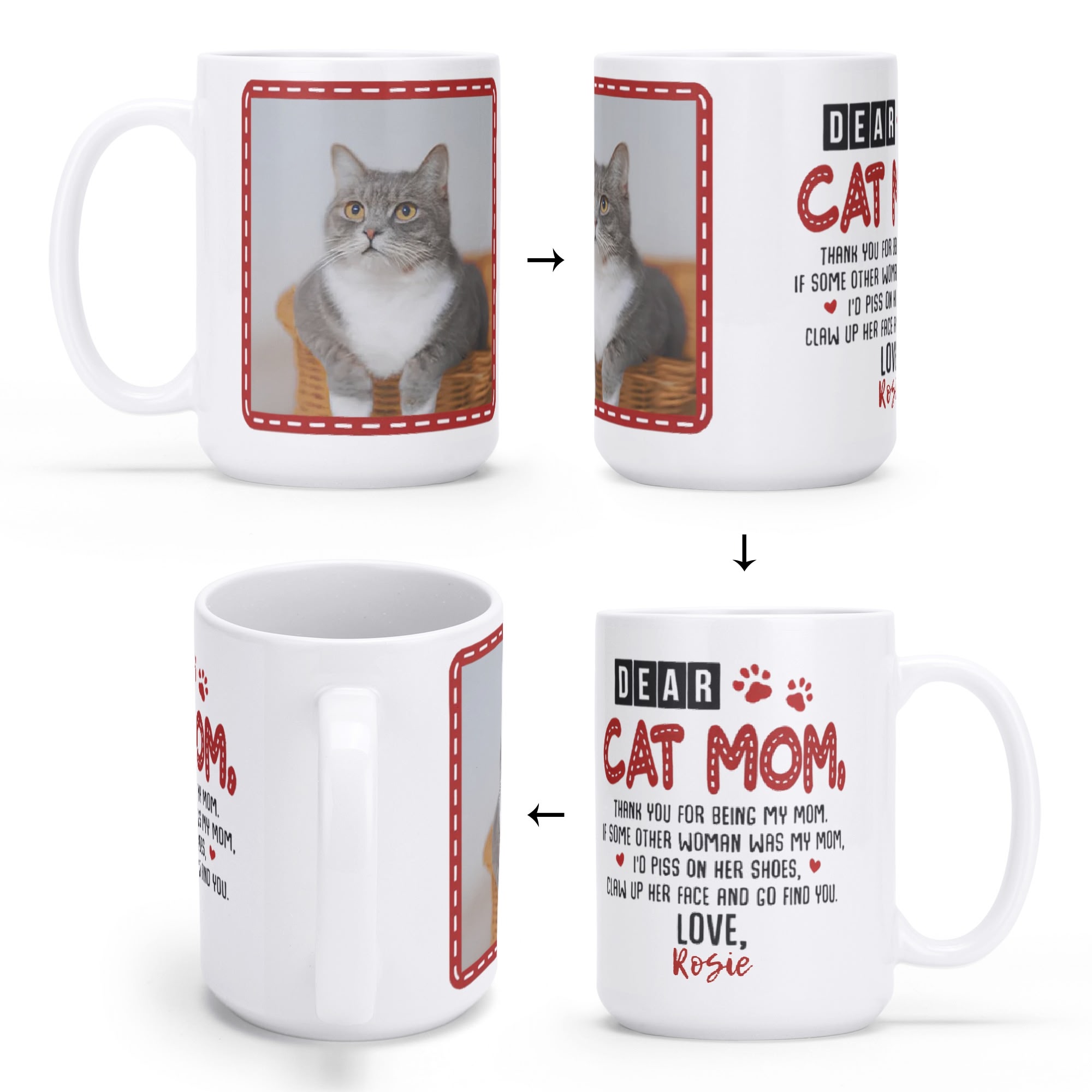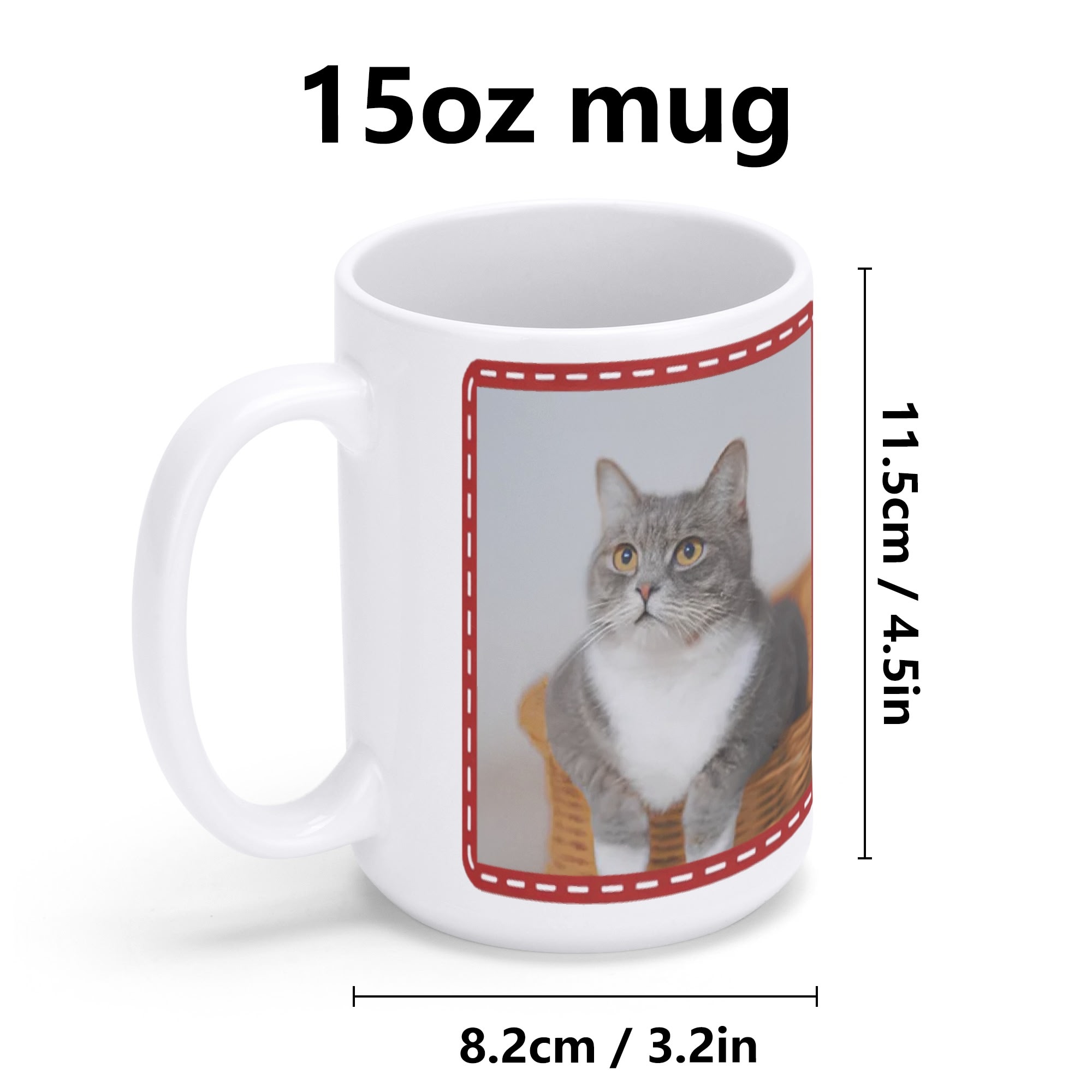 * Dimension: Our white coffee mug with a capacity of 15 oz, it’s the perfect size for your morning brew or an afternoon pick-me-up