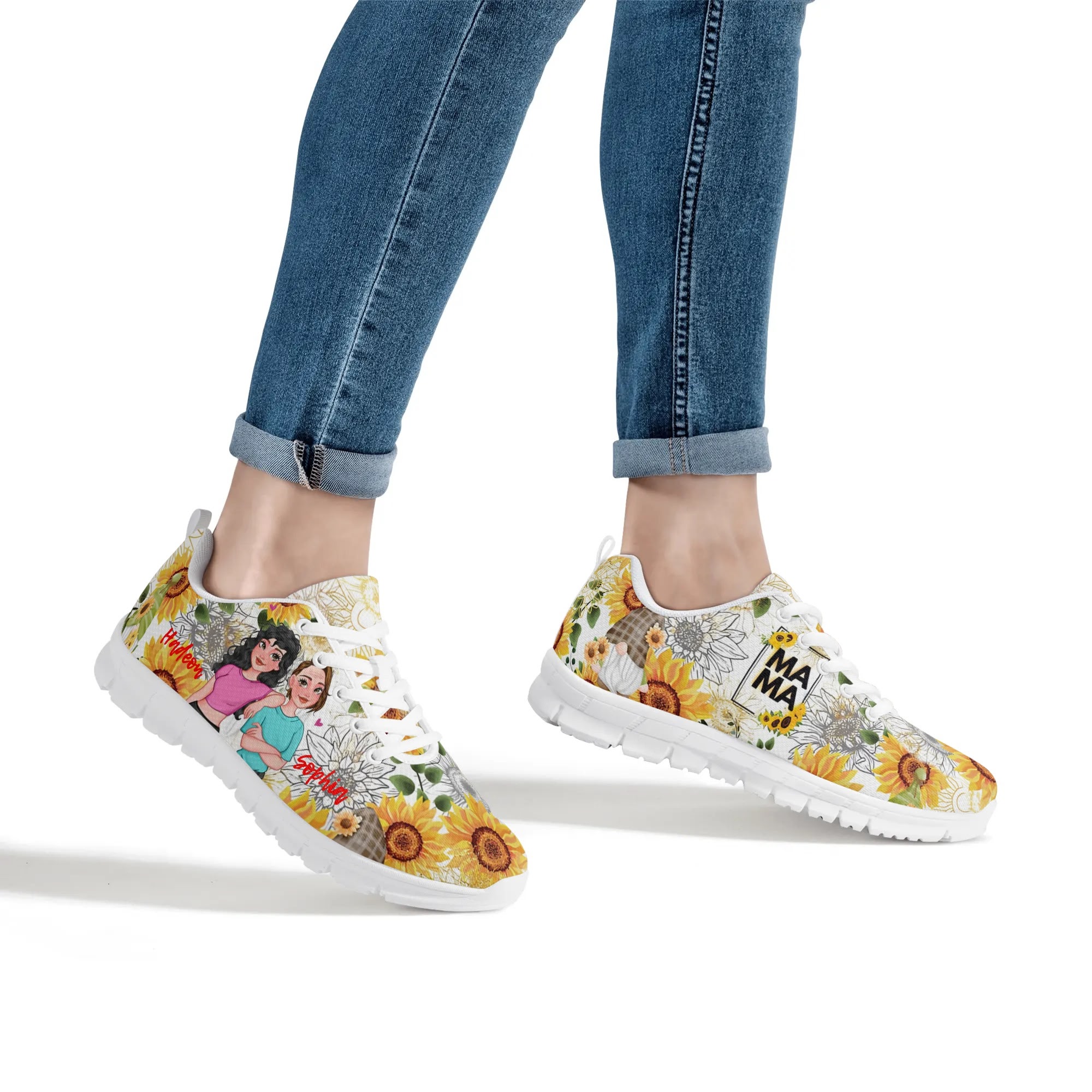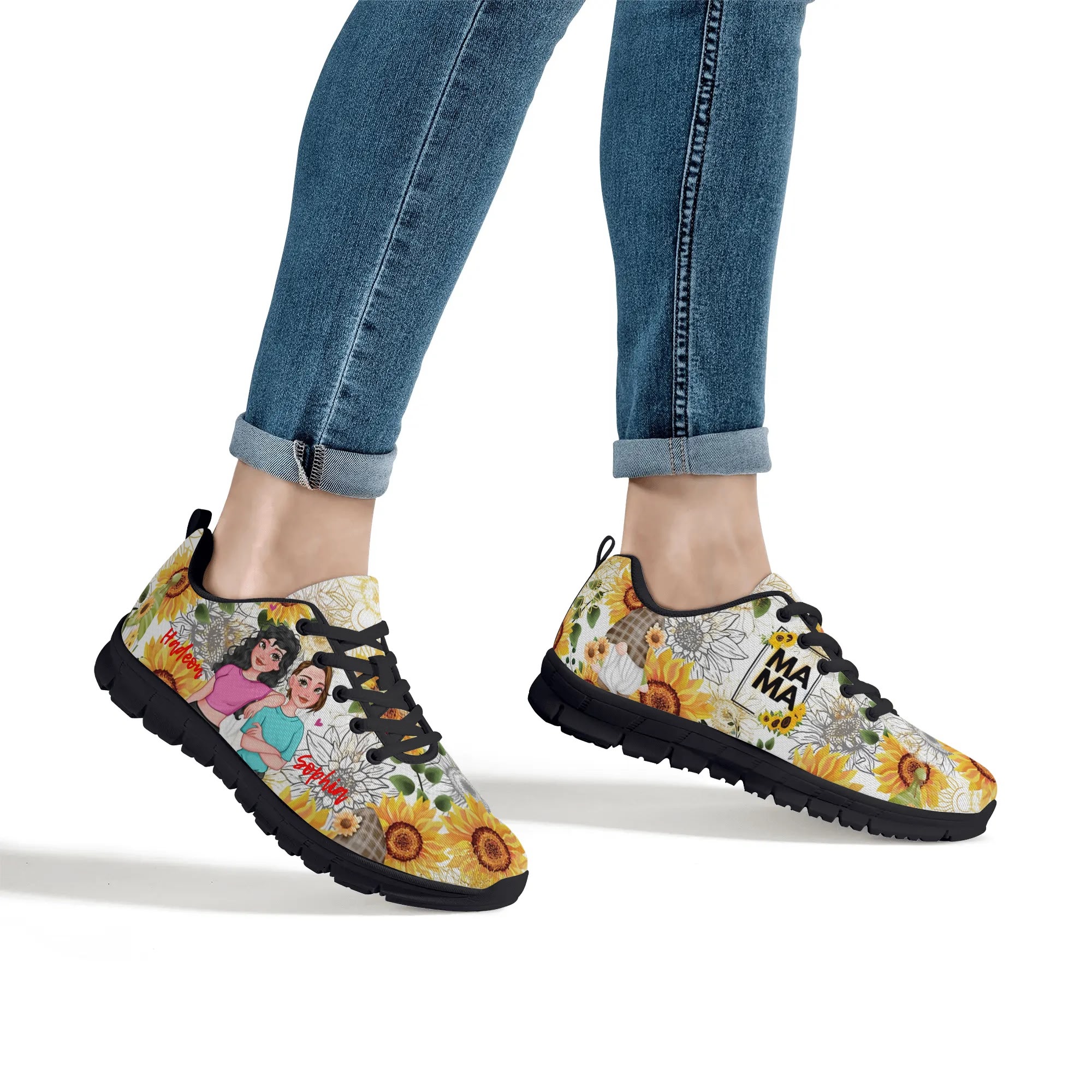 * Printing : Custom all over printed shoes lace-up closure construction for a snug fit.