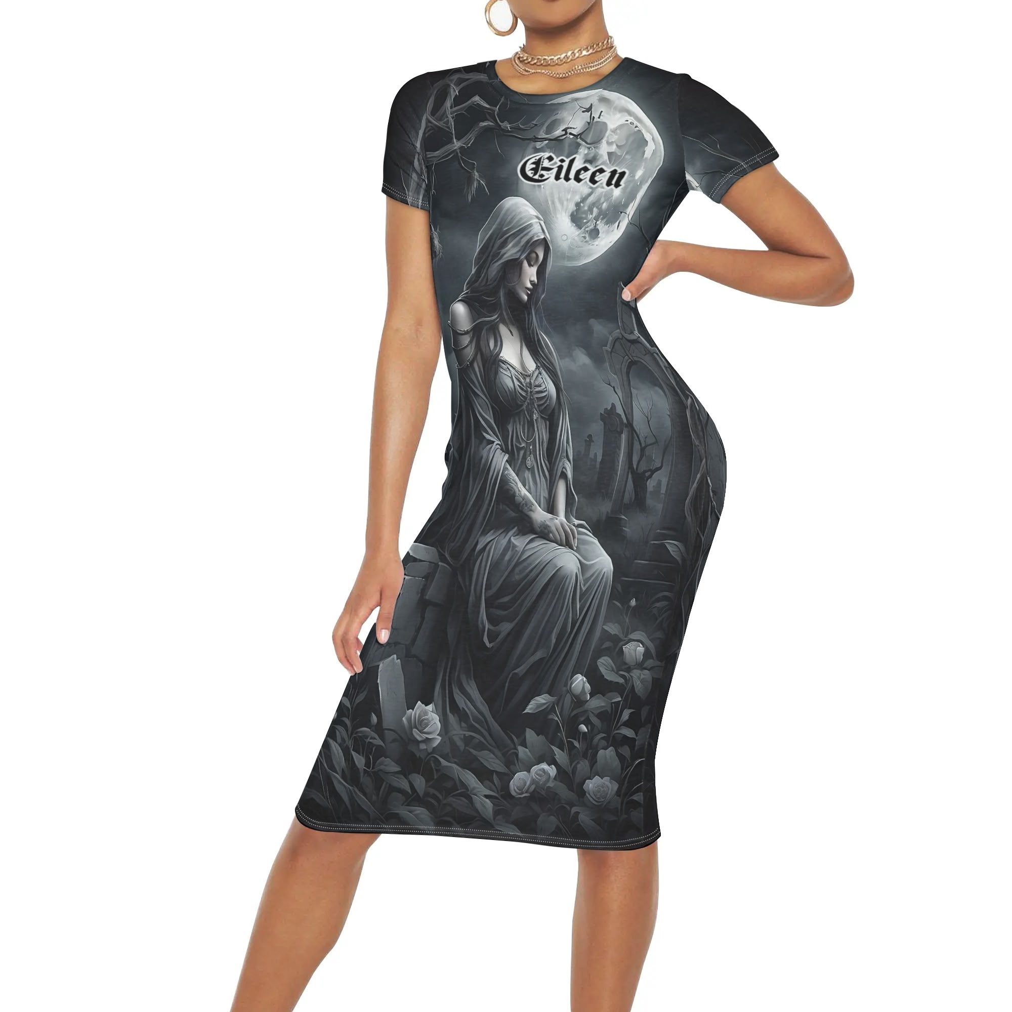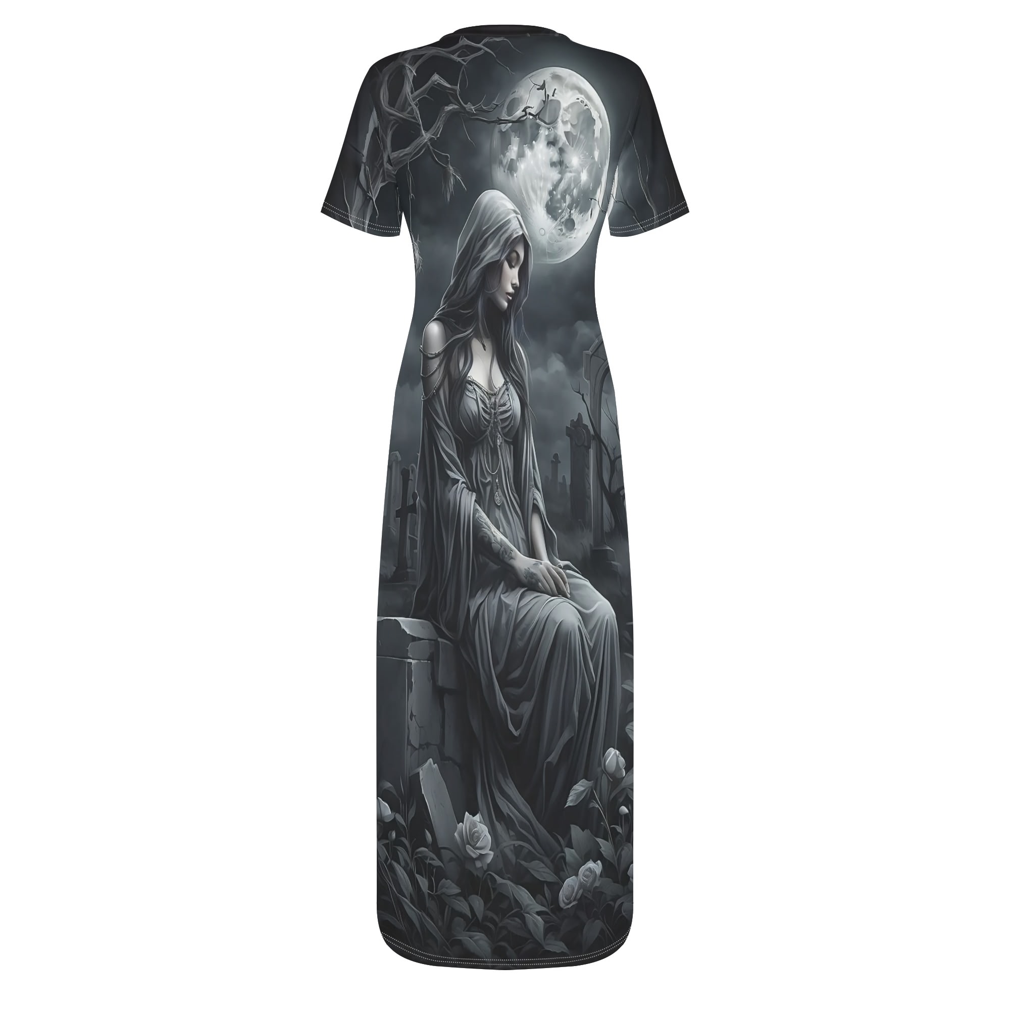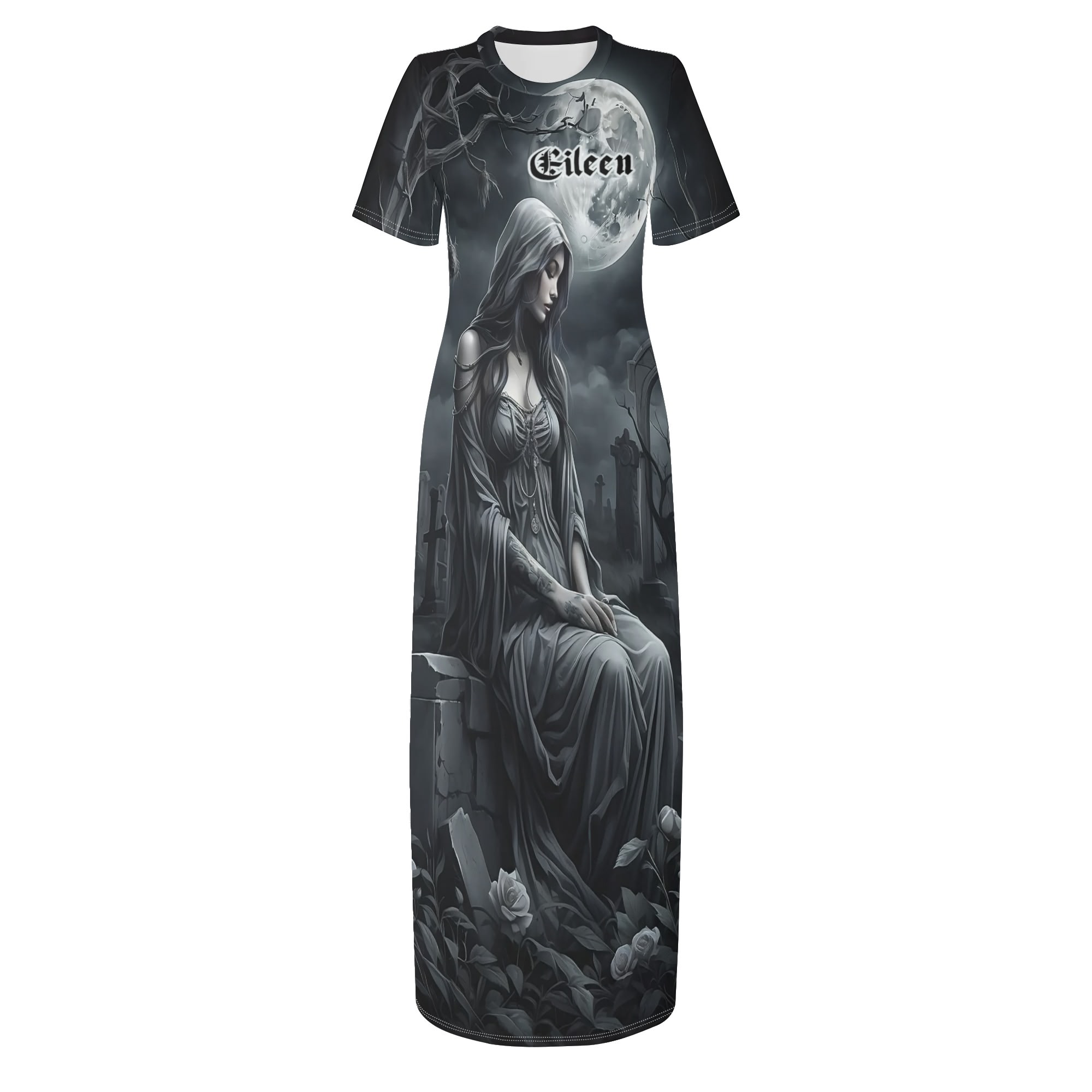 Women’s Short Sleeve Dress Casual All Over Print Tshirt Long Dresses